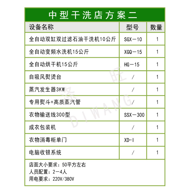 中型干洗店方案二