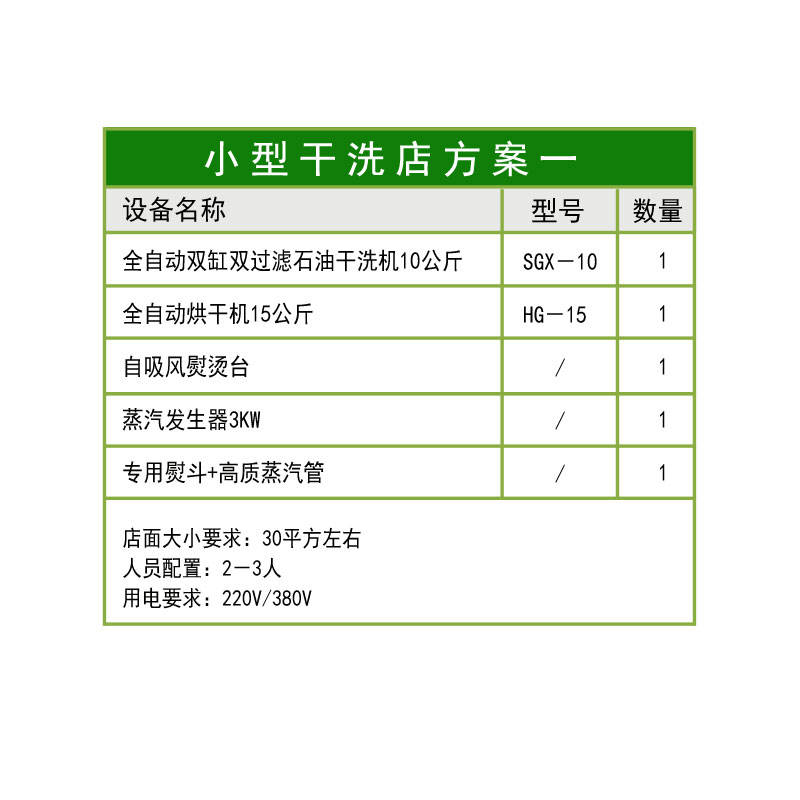 中型干洗店方案